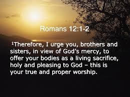 I learn from Scripture, in view of God’s mercy, I am to offer my body “as a living sacrifice, holy and pleasing to God—this is your true and proper worship.”