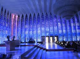 The designer Claudio Naves and the Belgian stained glass artist Huber Van Doorne created a worship structure nothing short of Art that cries out as a pathway to adulation.
