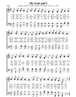 My God and I go in the fields together, we walk and talk as good friends should and do. We clasp our hands, our voices ring with laughter. My God and I walk through the meadow’s hue We clasp our hands, our voices ring with laughter My God and I walk through the meadow’s hue.