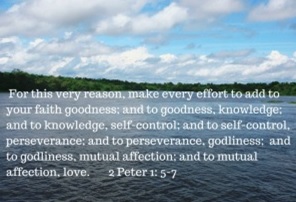 Next, I come across the aged and mature apostle Peter, I discover, like him, I didn’t step onto the stage of faith with stickability. It is an acquired characteristic that grows my faith when I walk with Jesus. His Spirit adds goodness, then knowledge, then self-control, and as that happens, THEN PERSEVERANCE starts to appear. And from that base godliness grows, then mutual affection, and finally the resultant love starts to show substance (2 Peter 1:5-7).